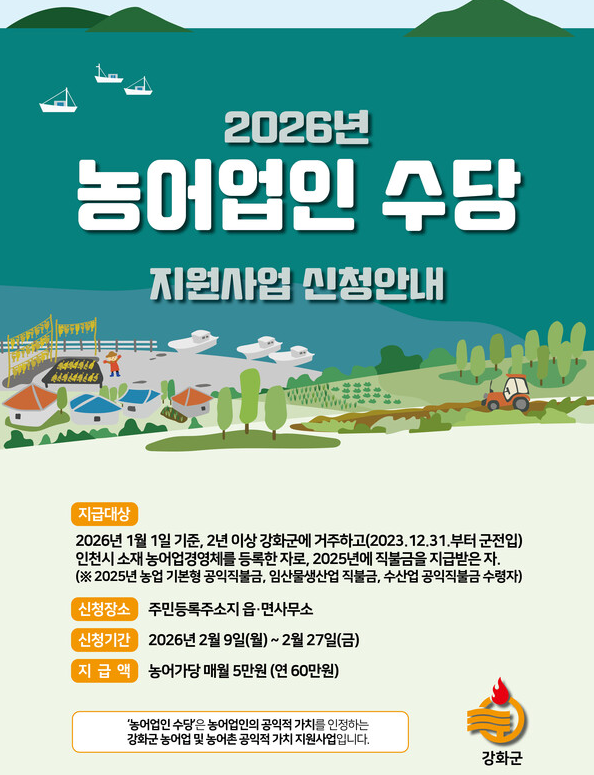 2026 인천광역시 농어업인수당 신청방법 자격 지급 시기는 인천에서 농업·어업·임업에 종사하시는 분들이라면 반드시 확인하셔야 할 핵심 정보입니다.