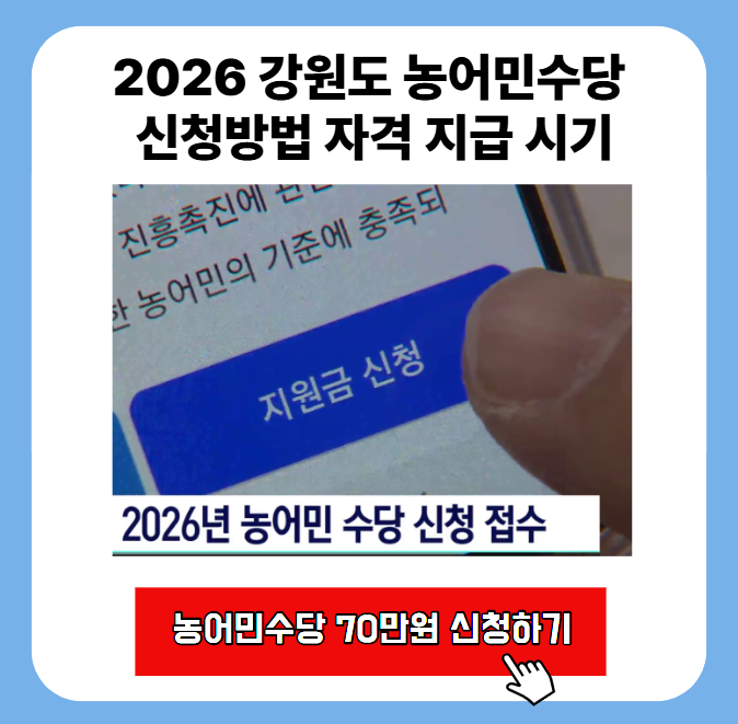 2026 강원도 농어민수당 신청방법 자격 지급 시기(70만원)
