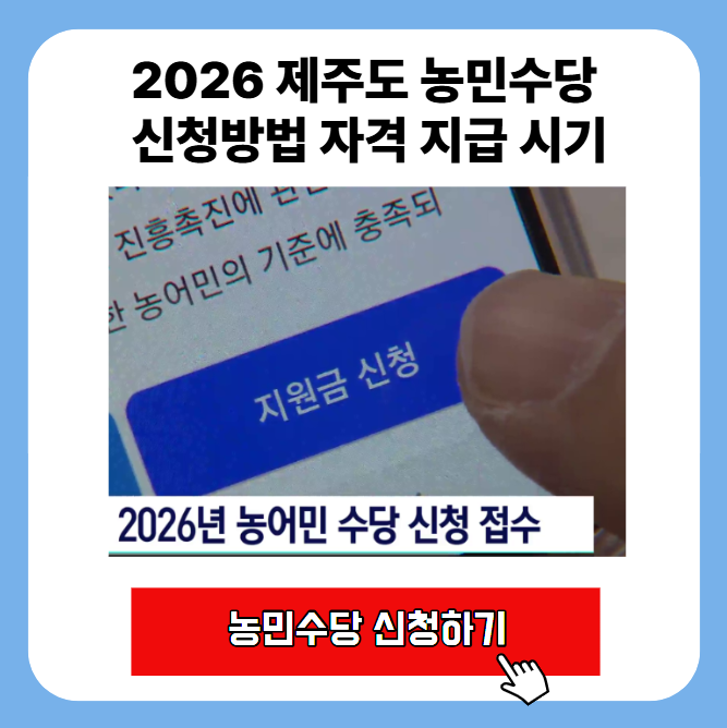 2026 제주도 농민수당 신청방법 자격 지급 시기는 제주에서 농업에 종사하시는 분들이라면 반드시 챙기셔야 할 핵심 정책입니다.2026년부터 제주특별자치도는 농민수당을 대폭 확대하면서 지급 금액을 인상하고, 지원 대상과 예산 규모도 크게 늘렸습니다. ✔ 1인당 최대 50만 원 지급✔ 예산 260억 원, 약 5만 2천 명 지원✔ 상반기 중 탐나는전 카드 충전 지급 이 글 하나로 2026 제주도 농민수당을 … Read more